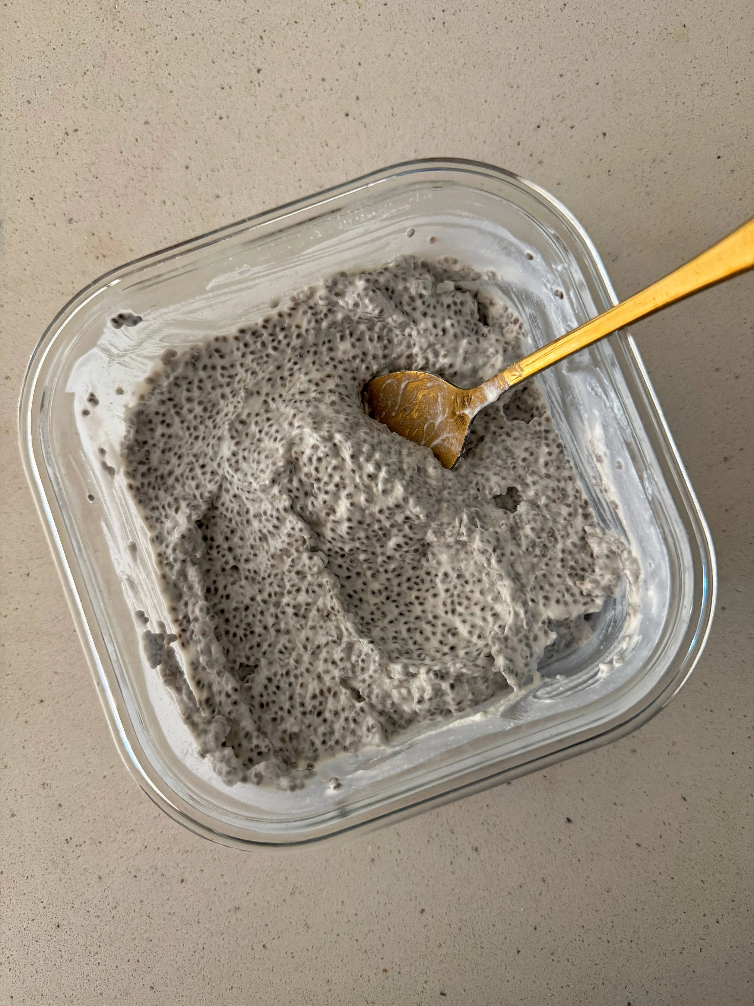 The combination of chia seeds and yogurt offers both prebiotics (from the chia) and probiotics (from the yogurt), supporting digestion and overall gut balance.