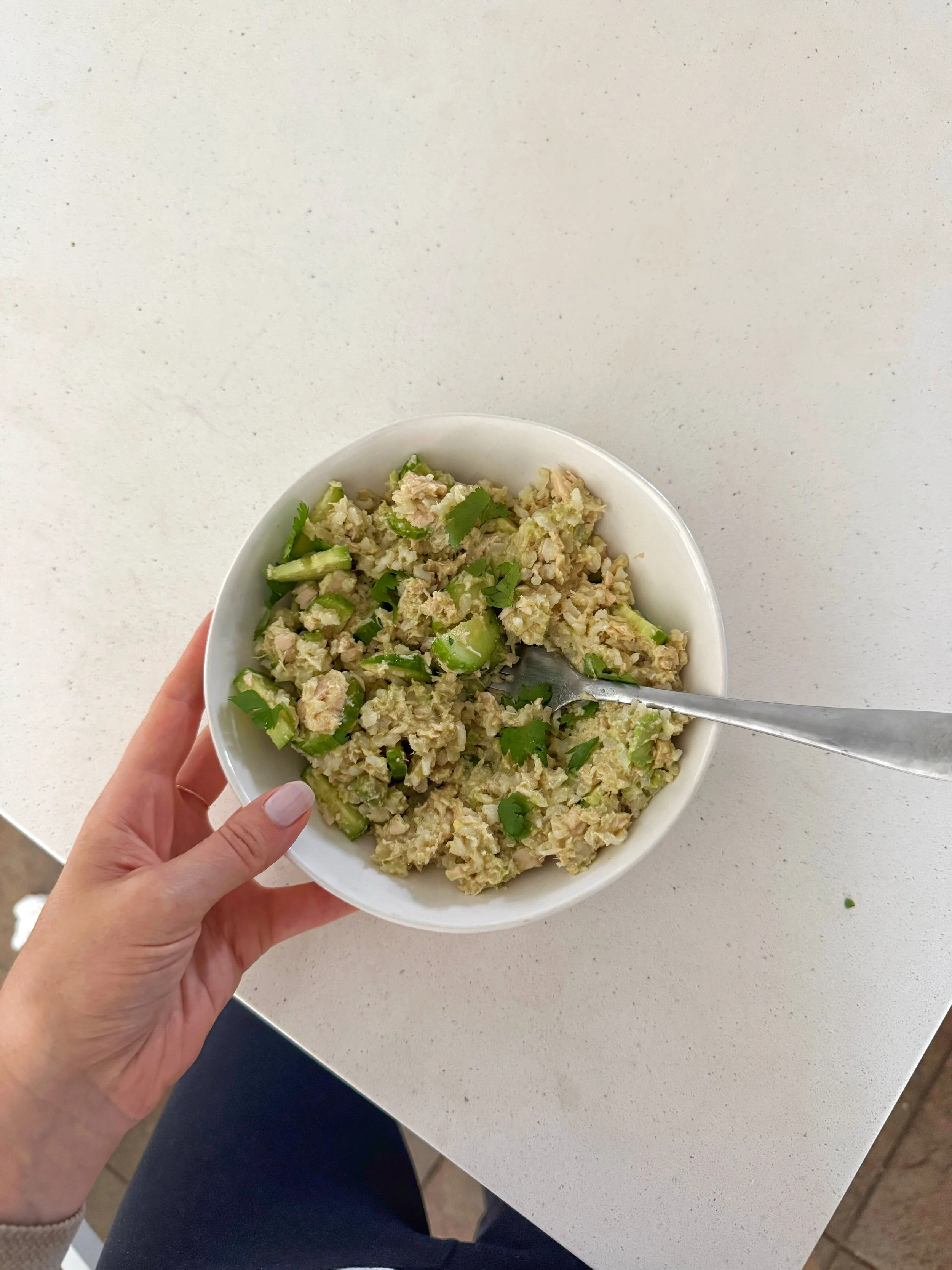 It’s balanced and filling: It includes protein from tuna + fiber from rice and veggies which keeps you full and satiated.