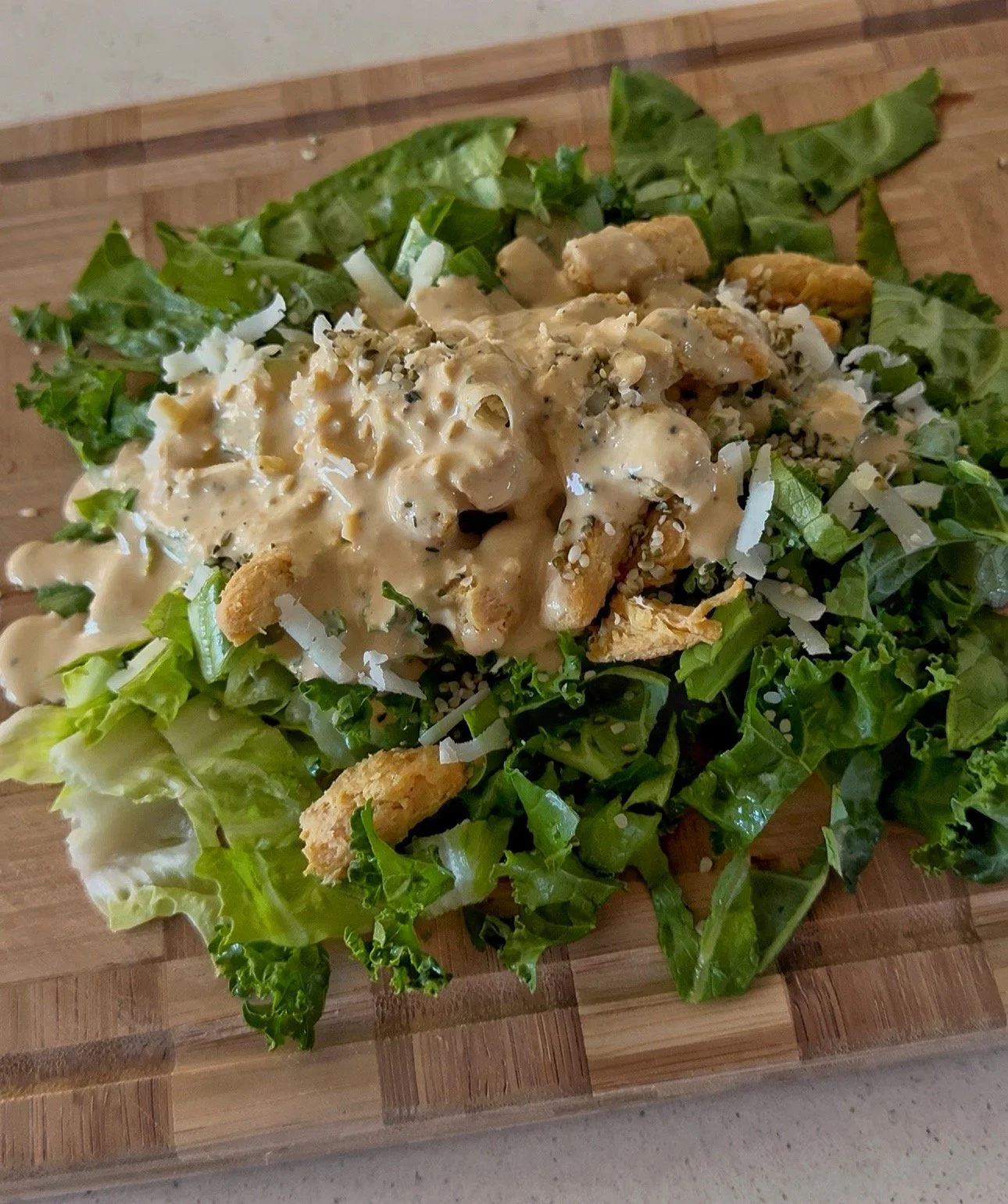One thing that helped me build healthier eating habits was making my favorite go-to options better for you. One of my favorite things to make and order was always a Caesar salad, especially on a wrap. However, typical Caesar salad dressings and kits from the store are not so great for you. This is why I love making healthier versions at home.