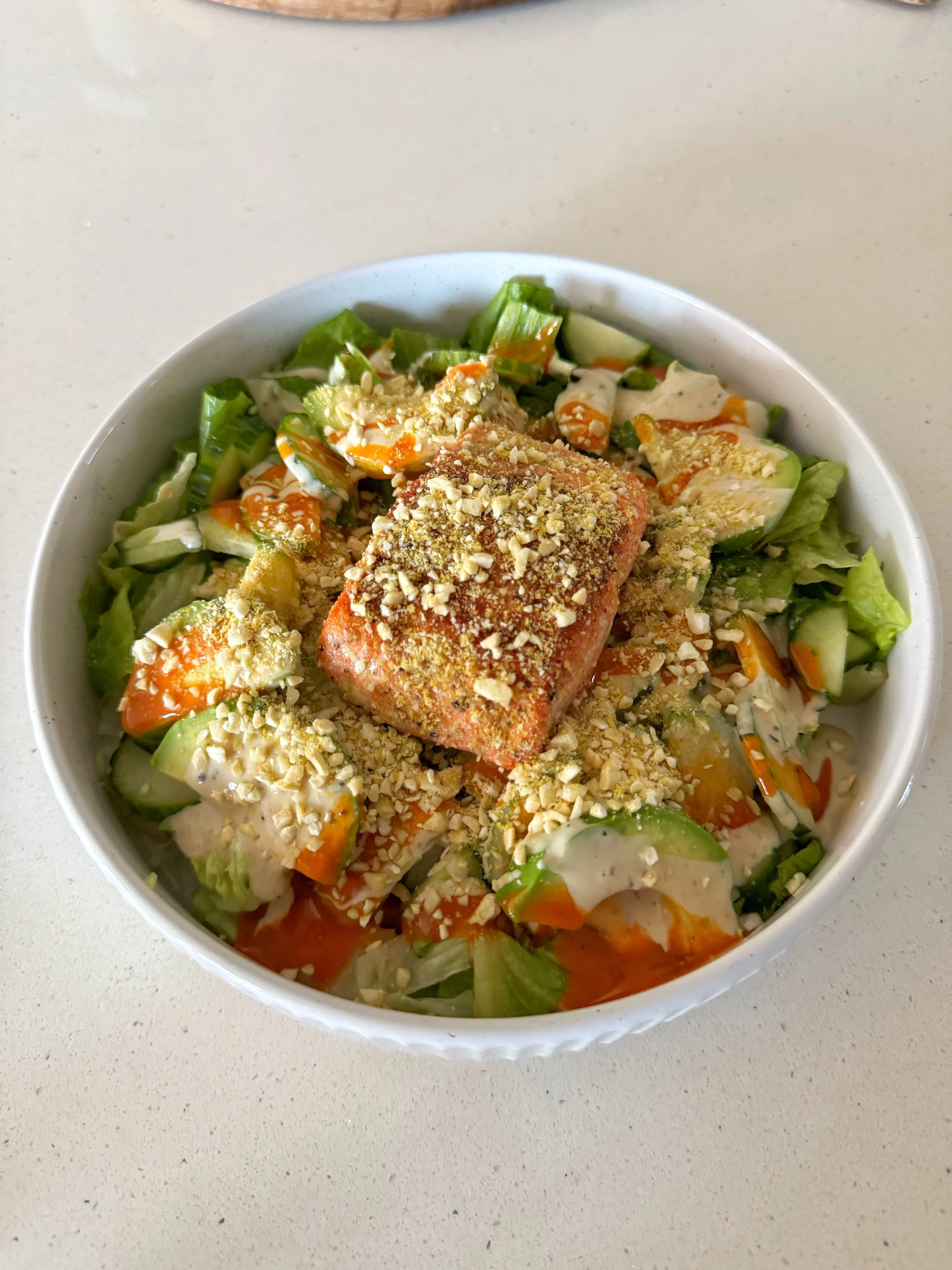 Spicy Buffalo Caesar Salmon Salad