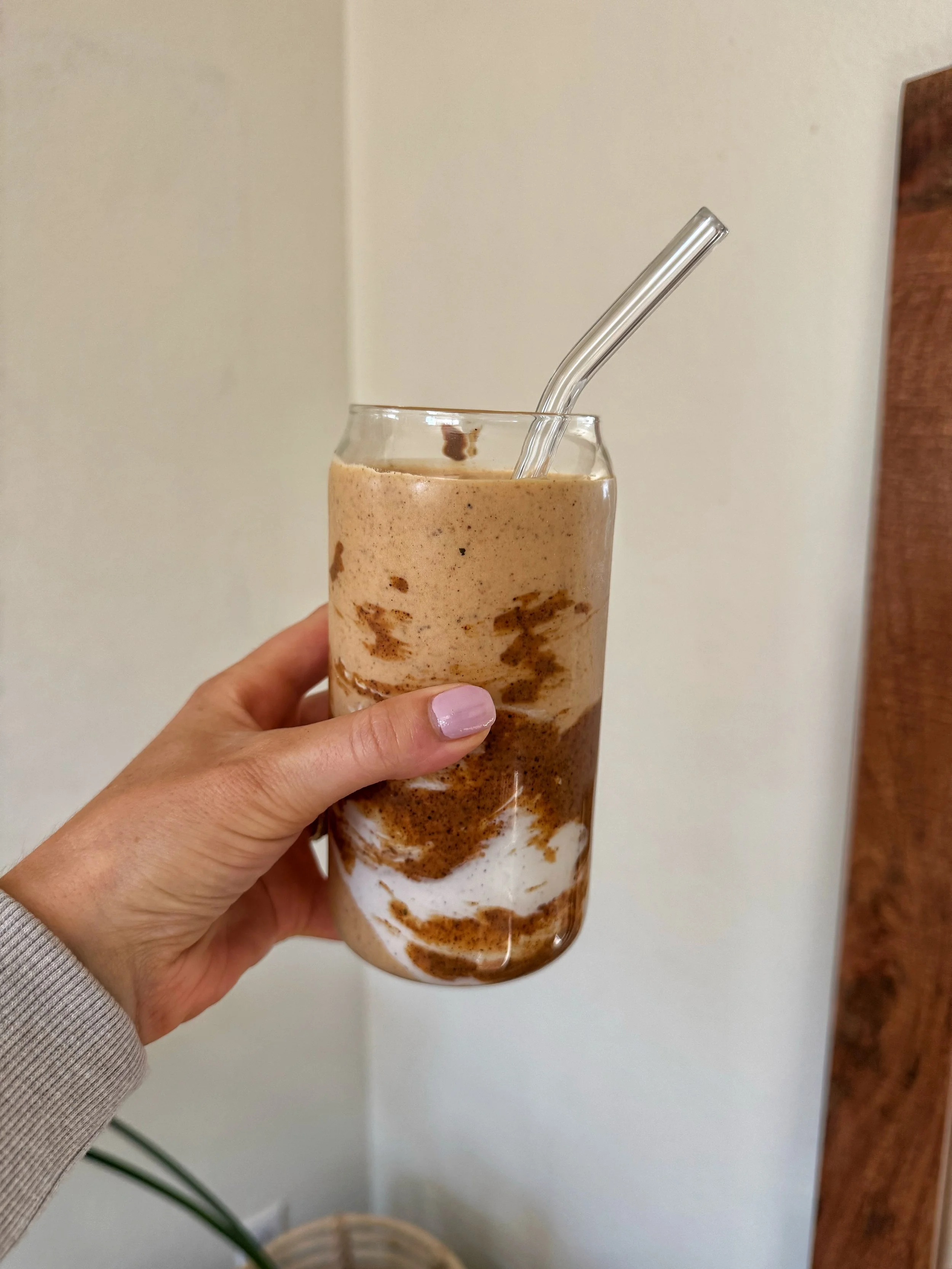 This recipe is one of my absolute favorites for the autumn season. It tastes like a cozy pumpkin spice latte in smoothie form. It’s creamy, sweet, and lightly spiced without the added sugars. Plus, it’s packed with protein, healthy fats, and hormone-friendly ingredients to help you feel full, energized, and balanced.