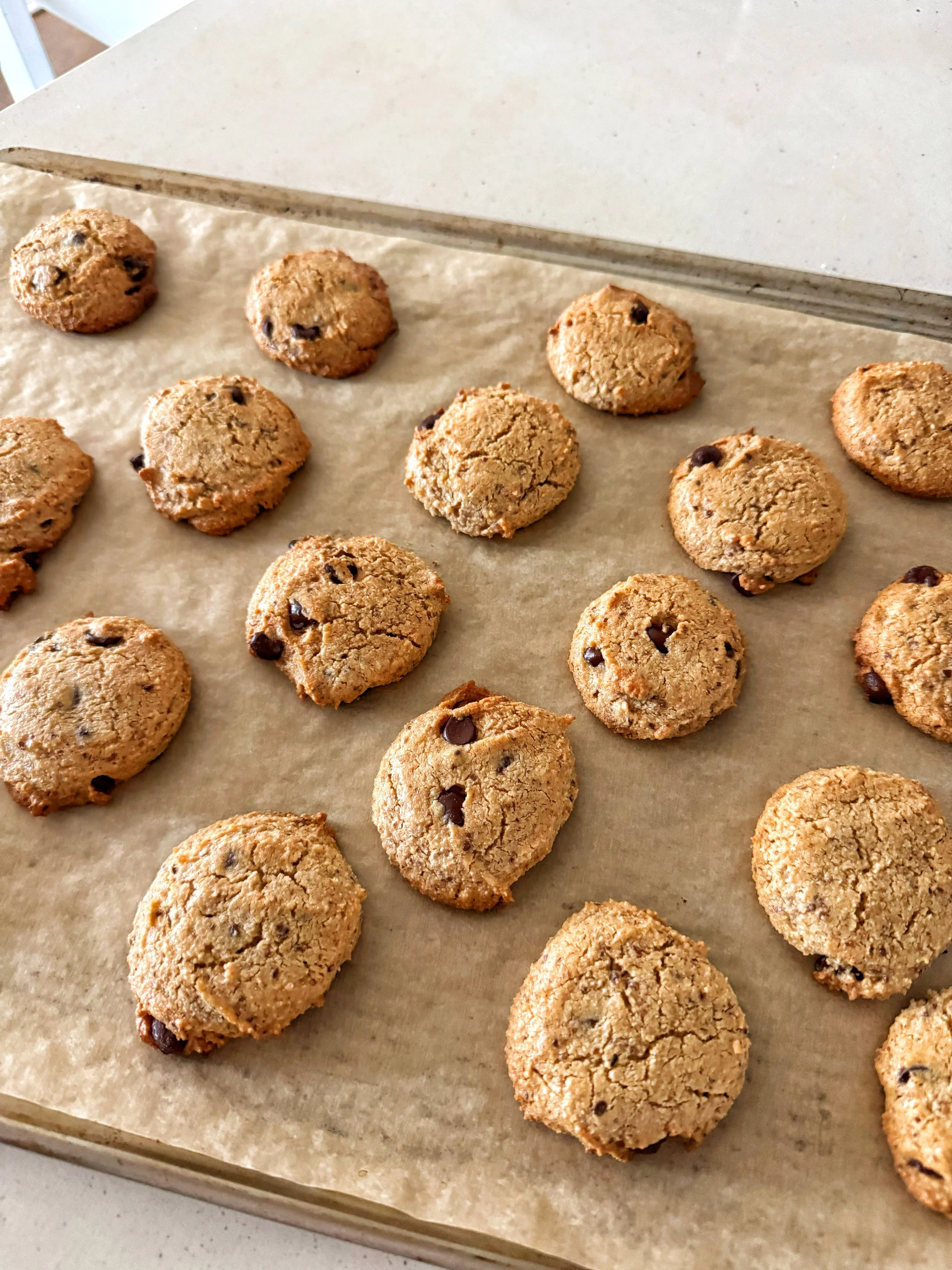 Making desserts from scratch at home is one of the best ways to eat healthier. Just by swapping out packaged foods you eliminate a lot of crappy ingredients from your diet. These chocolate chip cookies are one of my favorite healthy swaps.